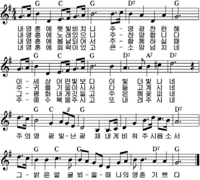 [2023.05.28. 큐티 링크 사무엘하 23:1-12] 내 영혼에 햇빛 비치니 주 영광 찬란해 이 세상 어떤 빛보다 이 빛 더 빛나네 주의 영광 빛난 광채 내게 비춰 주시옵소서 그 밝은 얼굴 뵈올 때 나의 영혼 기쁘다 내 영혼에 노래 있으니 주 찬양 합니다 주 귀를 기울이시사 다 듣고 계시네 주의 영광 빛난 광채 내게 비춰 주시옵소서 그 밝은 얼굴 뵈올 때 나의 영혼 기쁘다 내 영혼에 봄날 되어서 주 함께 하실 때 그 평화 내게 깃들고 주 은혜 꽃피네 주의 영광 빛난 광채 내게 비춰 주시옵소서 그 밝은 얼굴 뵈올 때 나의 영혼 기쁘다 내 영혼에 희락이 있고 큰 소망 넘치네 주 예수 복을 주시고 또 내려 주시네 주의 영광 빛난 광채 내게 비춰 주시옵소서 그 밝은 얼굴 뵈올 때 나의 영혼 기쁘다